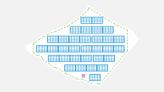 設置を予定している土地の形状に合わせて12kWのMY発電所キットを複数台設置することも可能です。また12.48kWの架台は3.12kW単位の4つに分けて柔軟なレイアウトがとれます。