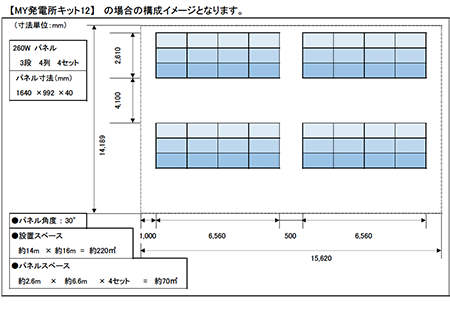MY発電所キット®12は、190m²以上の土地があれば売電収入が得られるエントリーモデル。個人で太陽光発電所を設置・所有できるMY発電所キット商品の中でも、初めての方でも安心してご購入いただける商品としてご好評をいただいています。